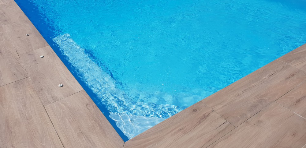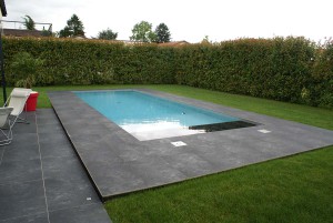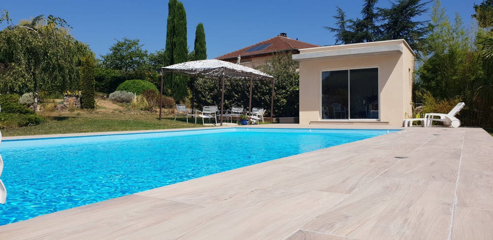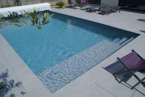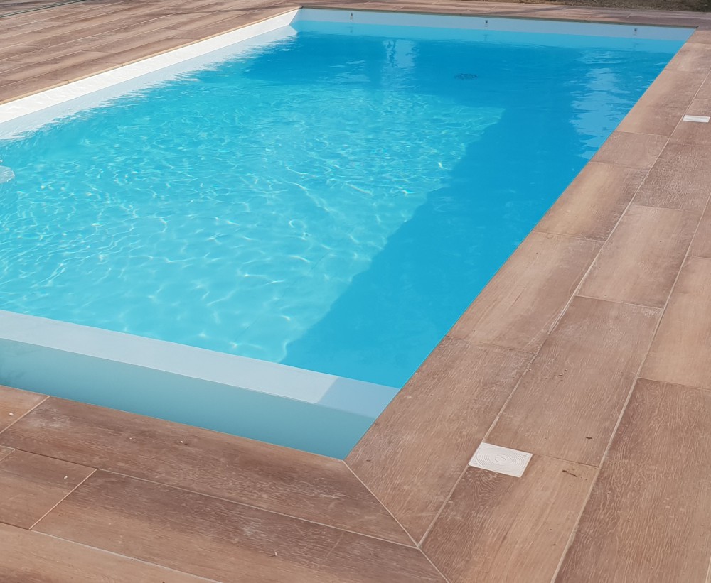 En continuité de la margelle choisie, en harmonie totale avec votre espace, ces carreaux de grandes dimensions sont posés par double encollage sur un support béton